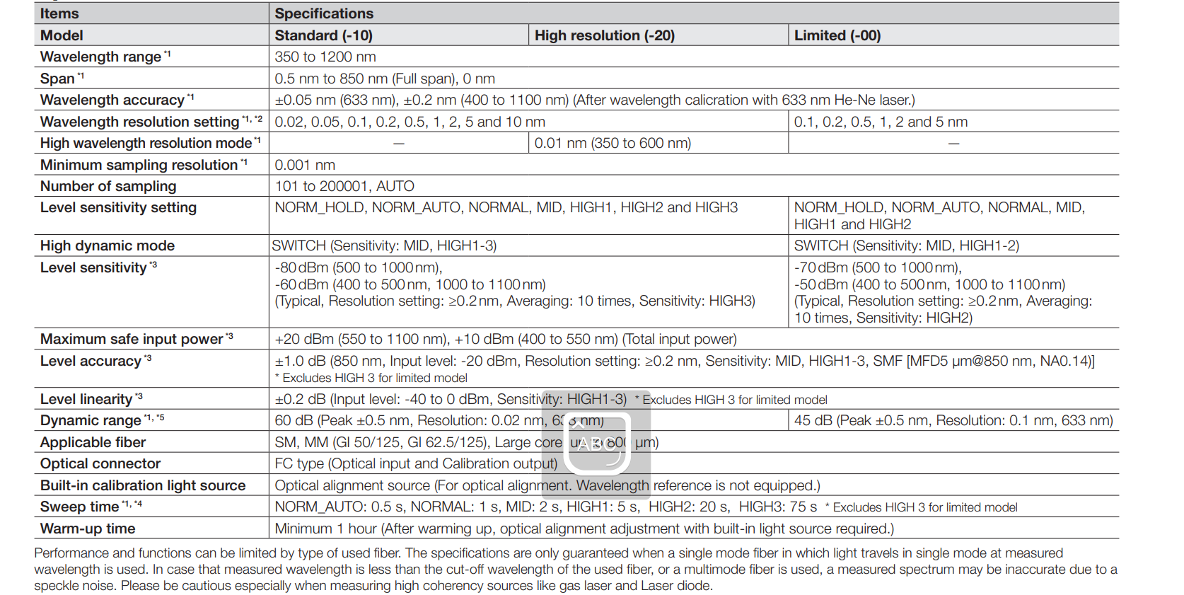 AQ6373E 可見光波長光譜分析儀